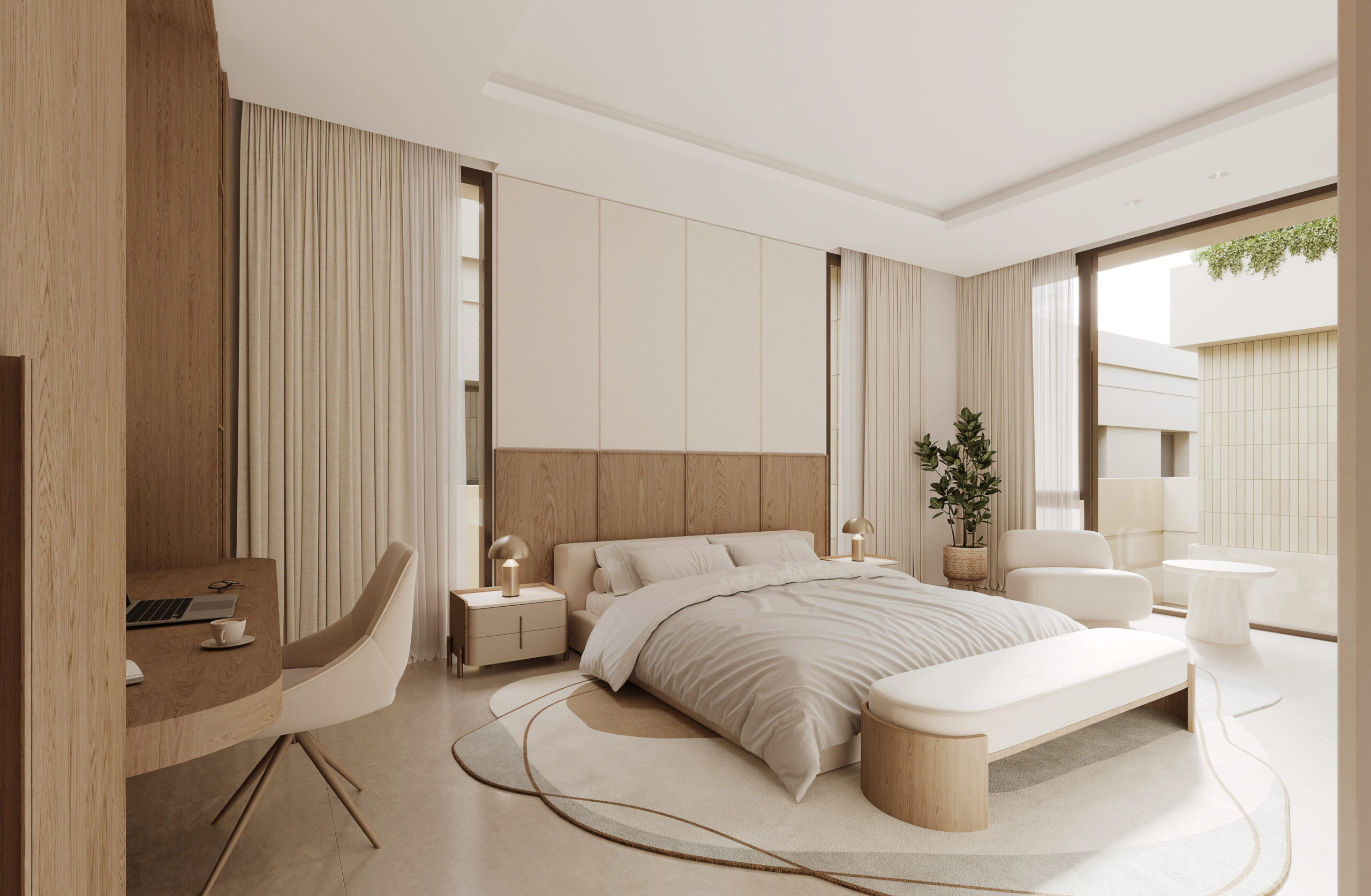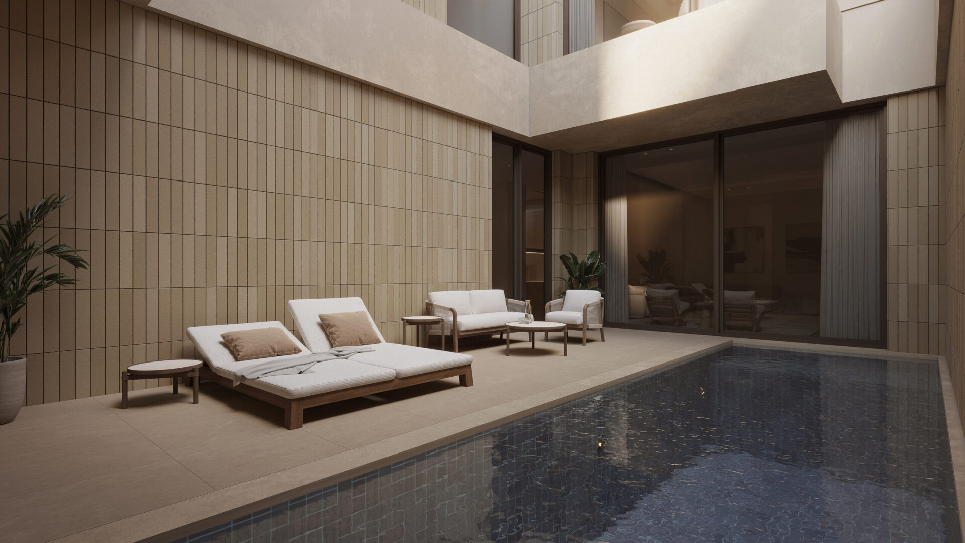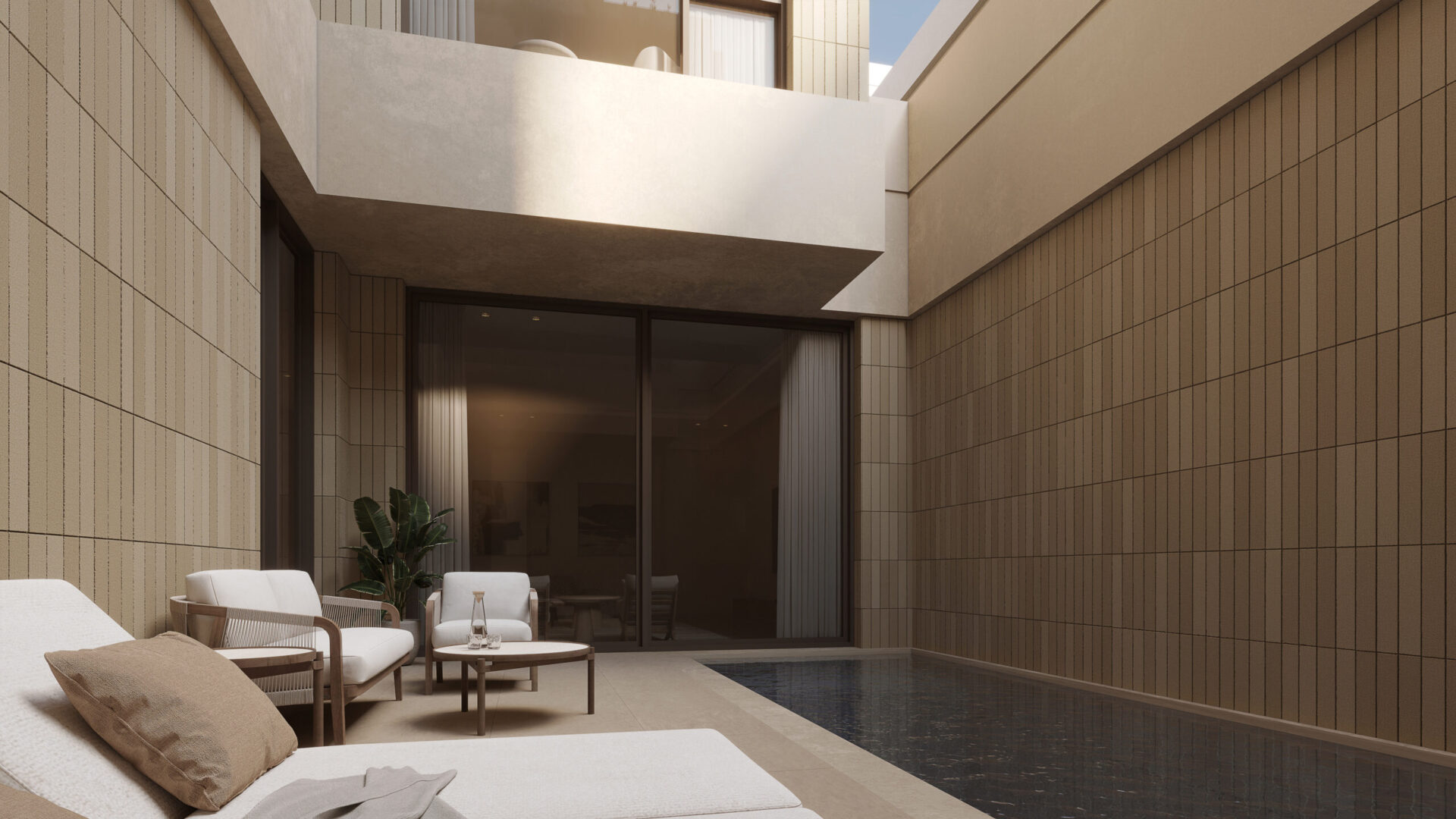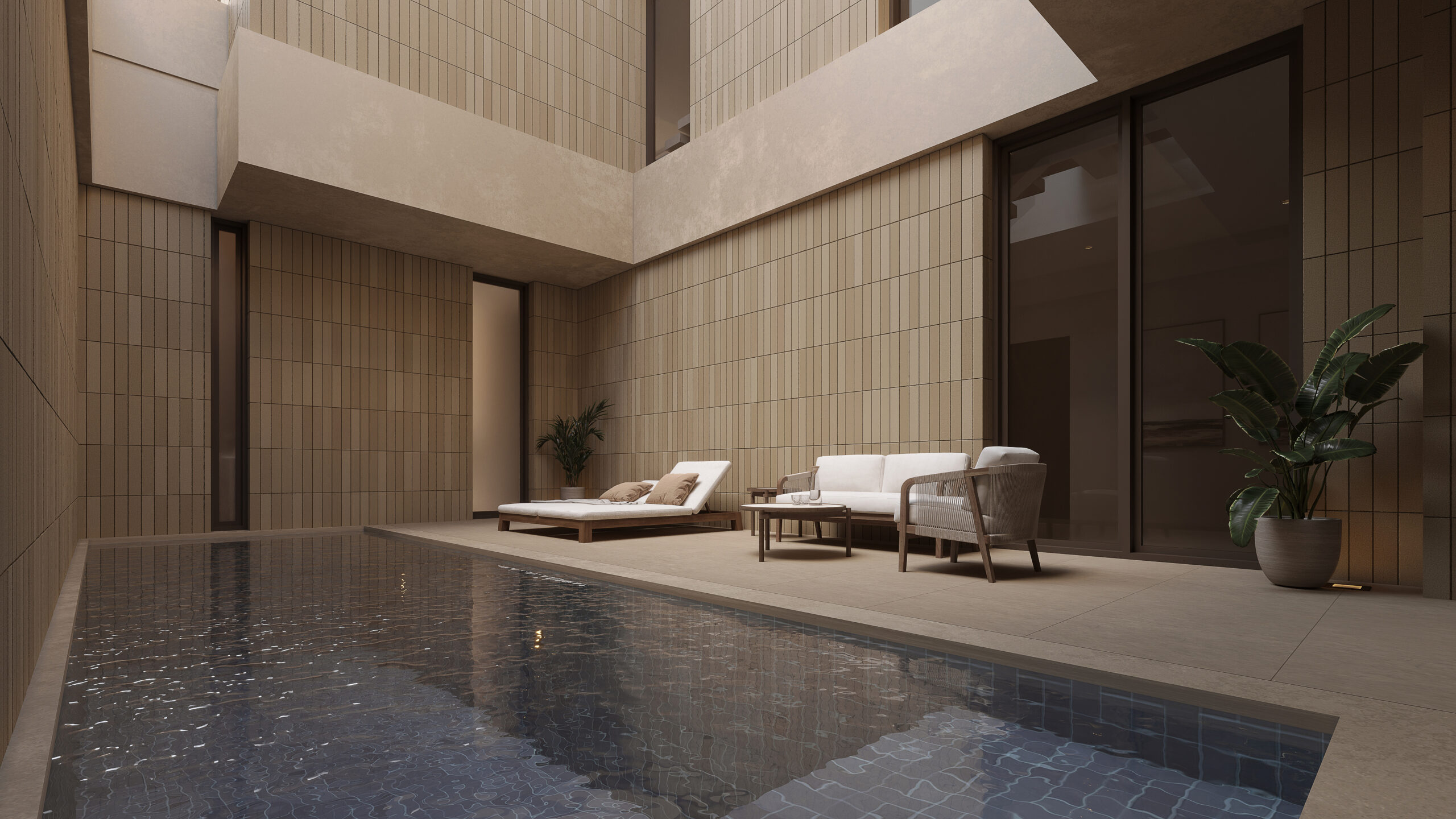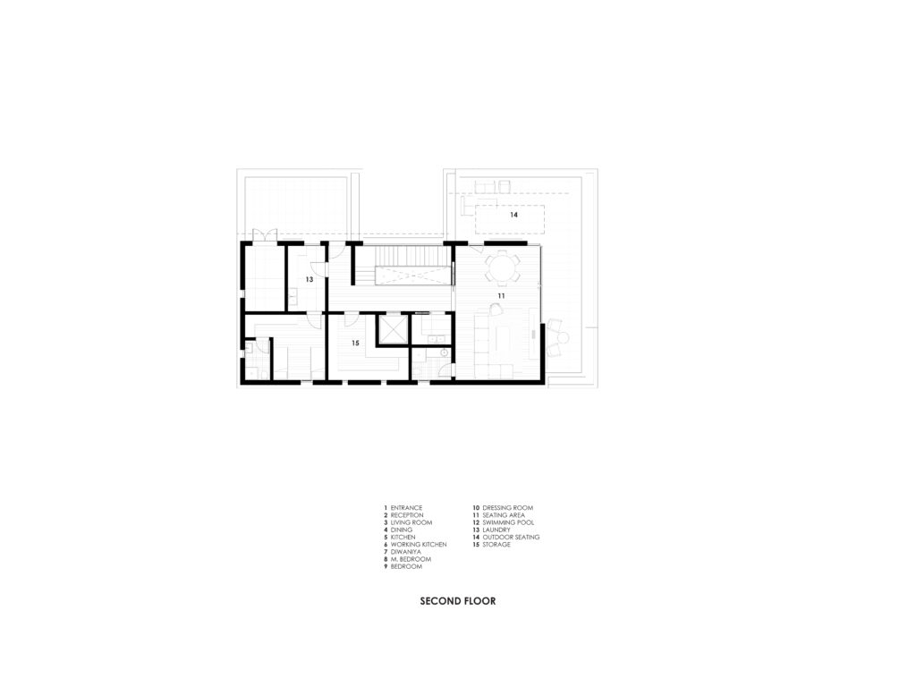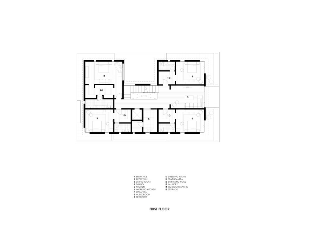 Simple and minimal in their form the bands create the main impression of the architecture of the villa. The walls and windows in turn span from one band to the band above in a rhythmic manner following the internal layout of each floor. A central courtyard serves as the heart of the villa providing natural light to the spaces around it as well as a secluded outdoor space for swimming and lounging.