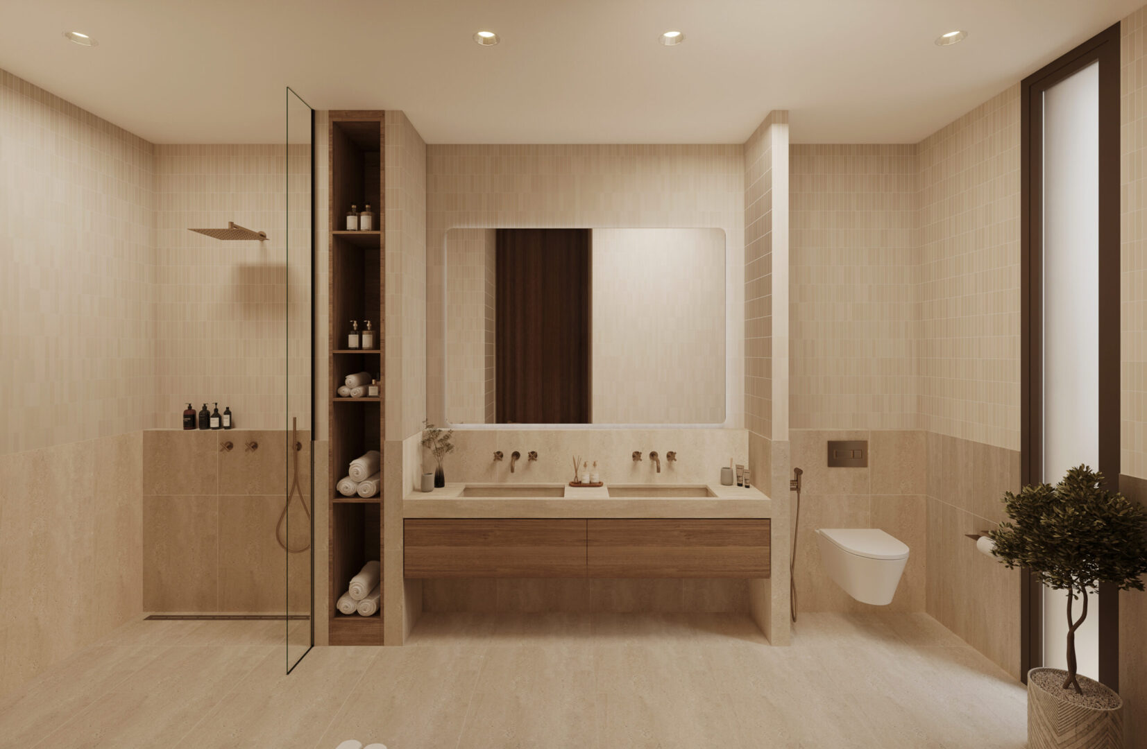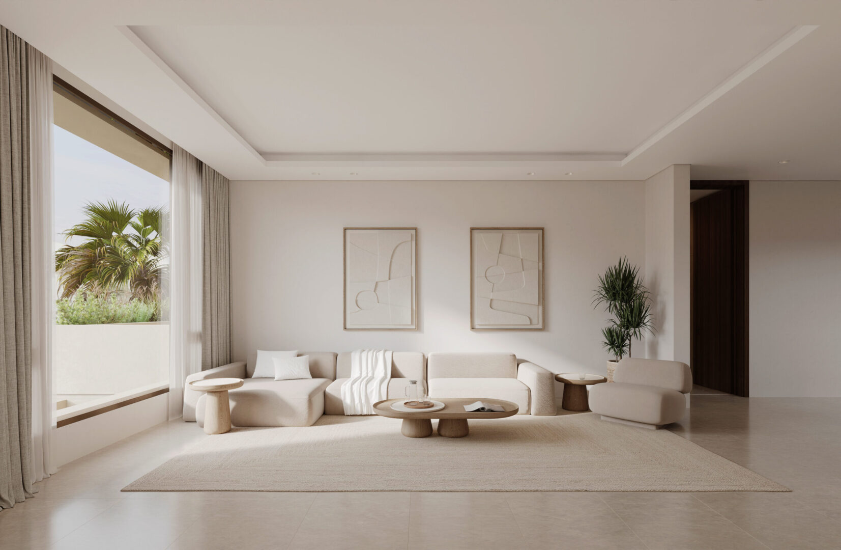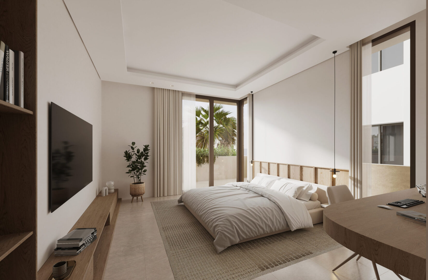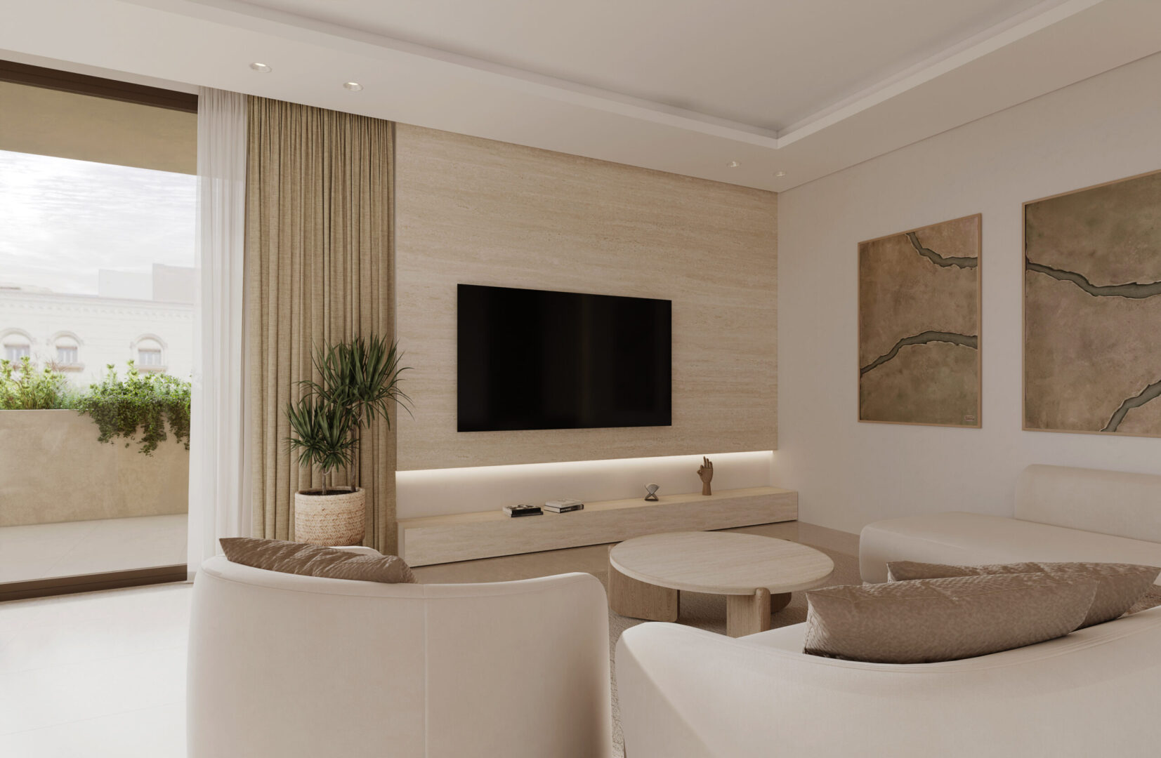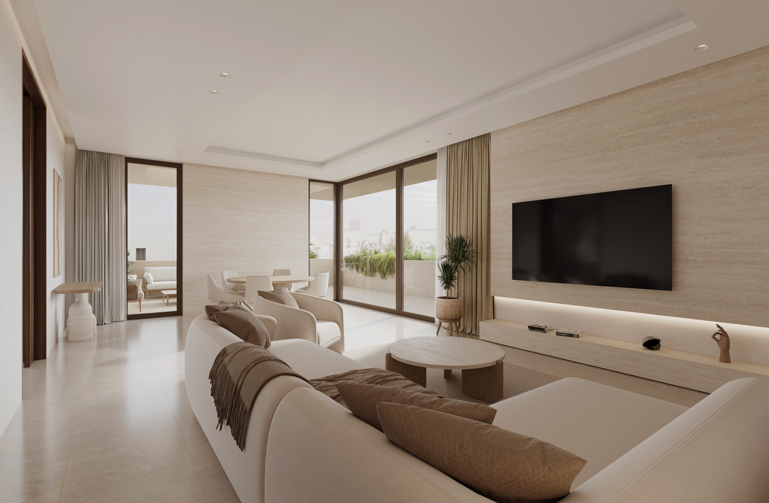 Simple and minimal in their form the bands create the main impression of the architecture of the villa. The walls and windows in turn span from one band to the band above in a rhythmic manner following the internal layout of each floor. A central courtyard serves as the heart of the villa providing natural light to the spaces around it as well as a secluded outdoor space for swimming and lounging.