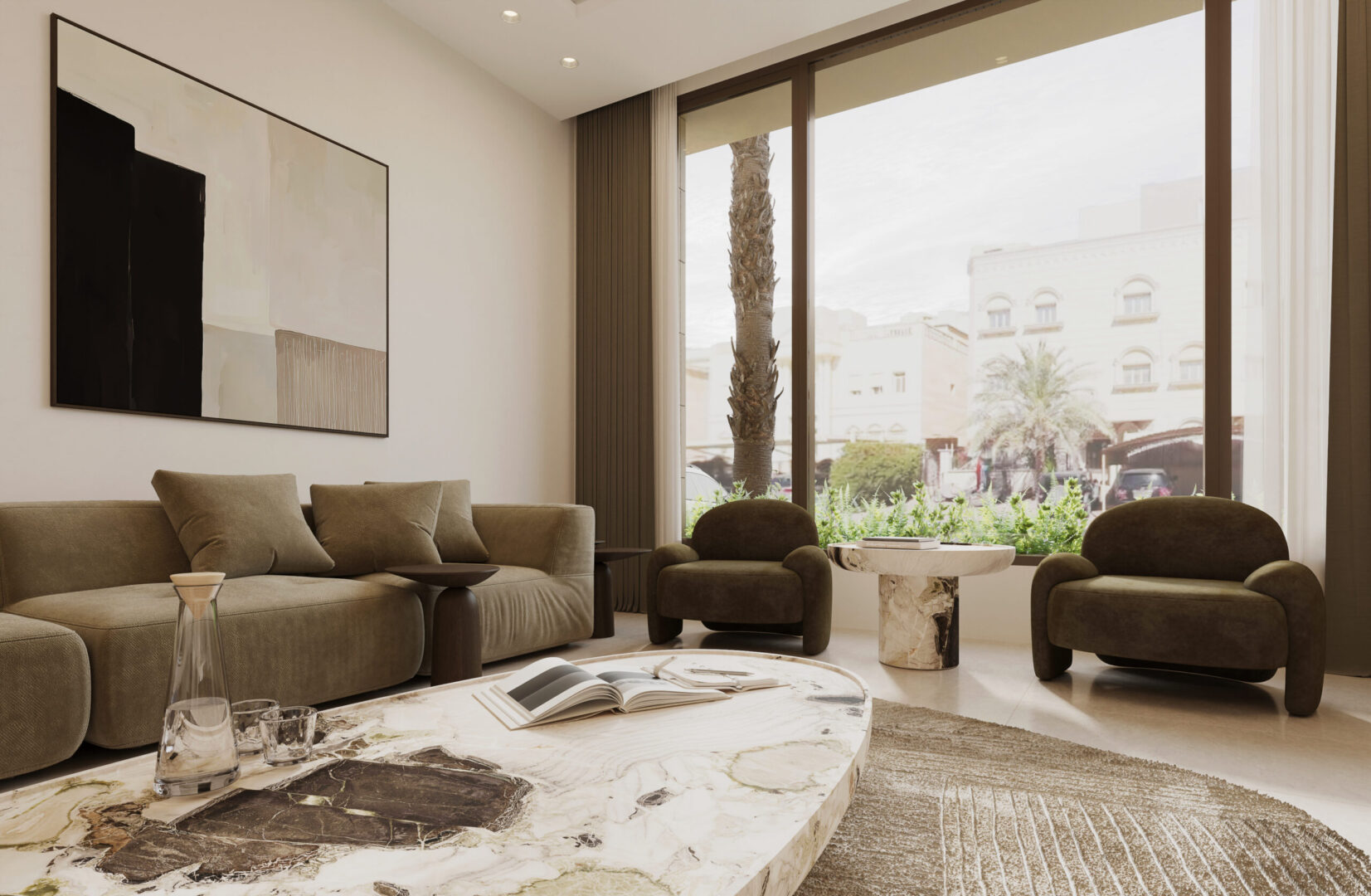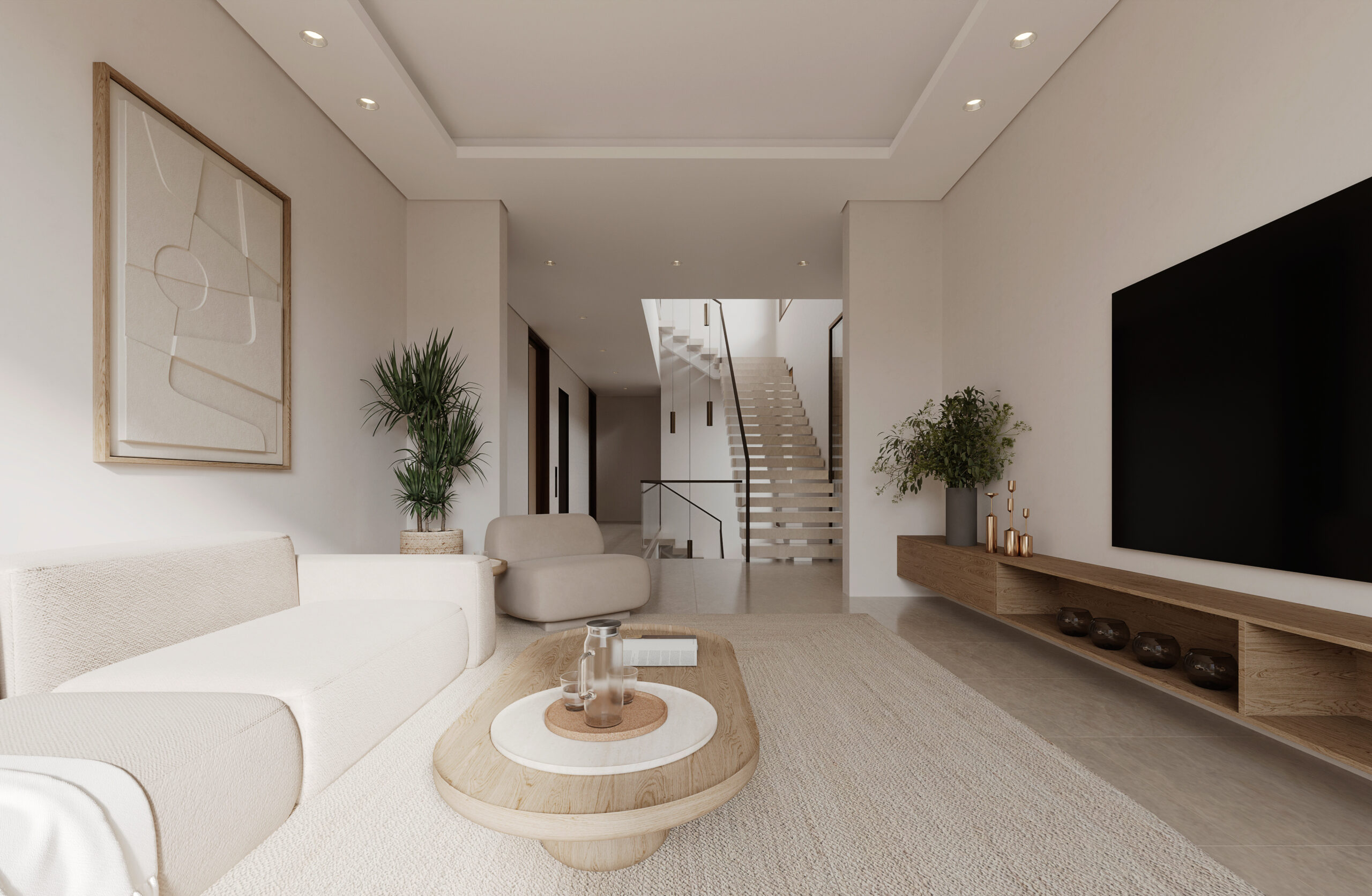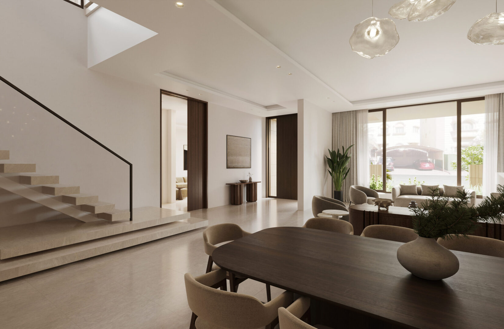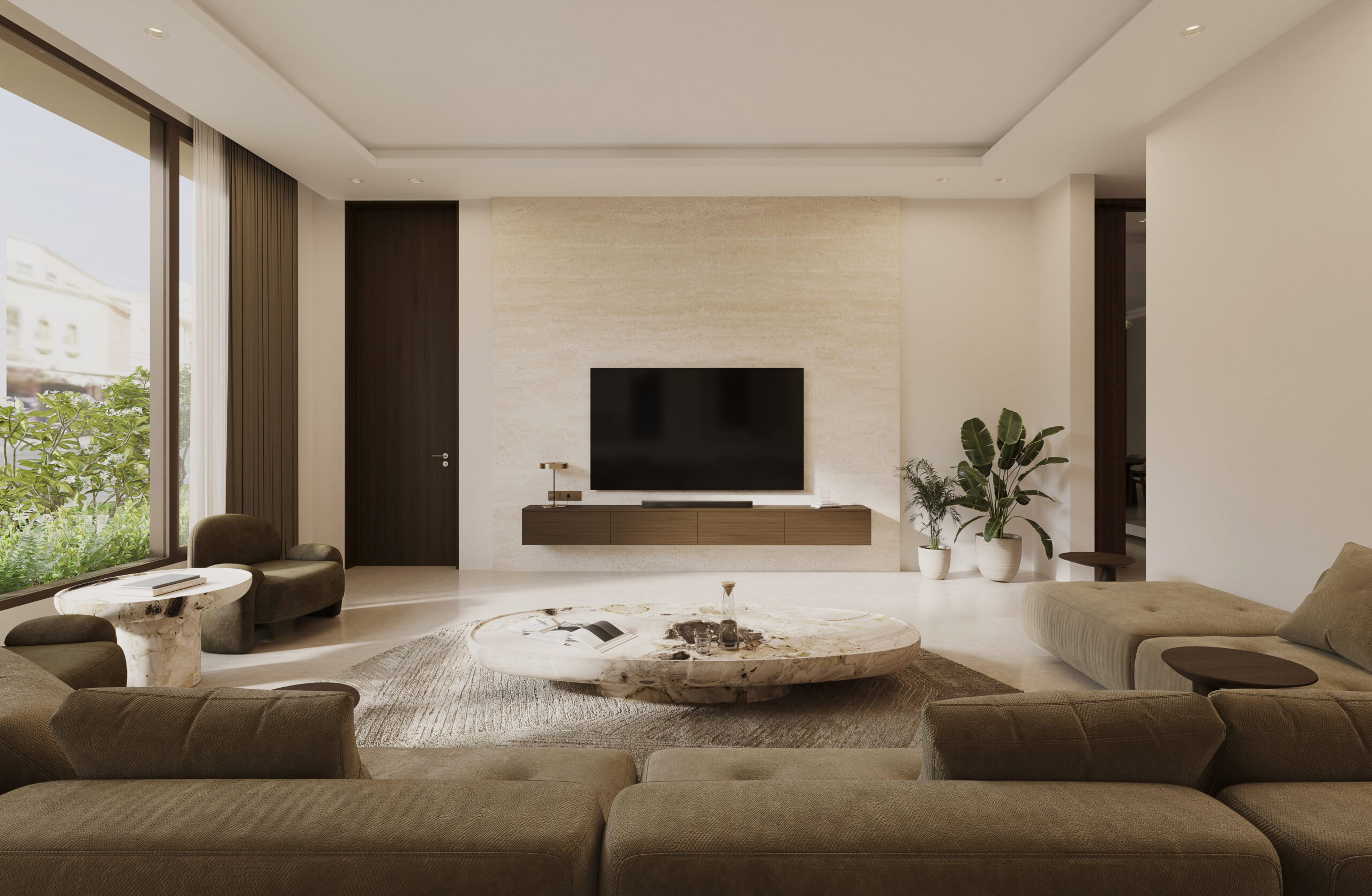 Conceptually the villa is designed as a series of stacked floors separated vertically by overhanging bands or slabs. The overhangs serve multiple purposes as they provide shade and cover from the sun as well as extend to provide terraces and outdoor spaces on all levels. The bands also are lined in some places with parapets that act as plant beds, this allows for a connection to nature, privacy from neighbors, and provide a visual middle ground between interior spaces and the streetscape.